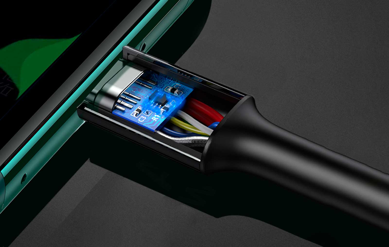Продукт имеет встроенный инновационный чип E-Marker, который определяет, какое устройство к нему подключено. Он обеспечивает интеллектуальное распределение питания, адаптированное к напряжению устройства, если ваш телефон или