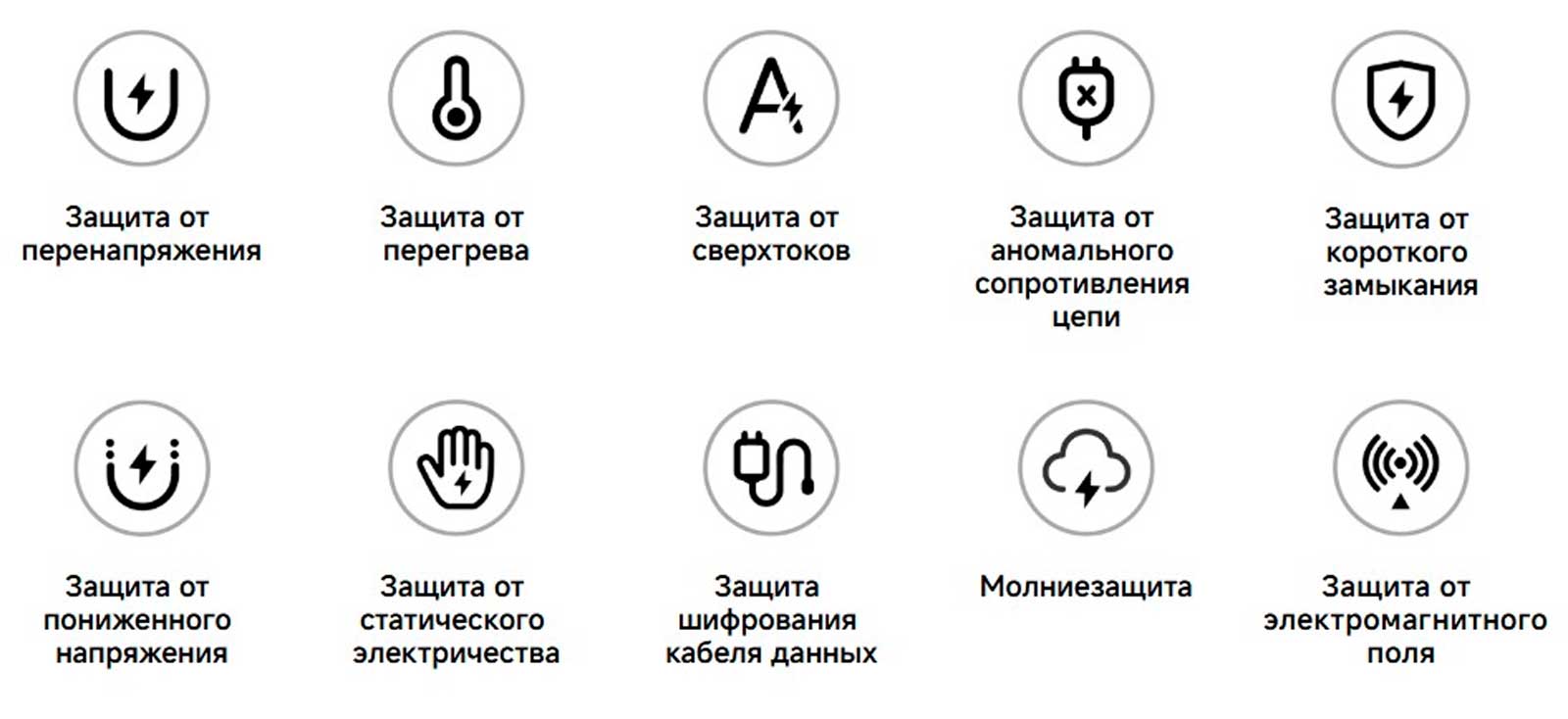 Множество защитных устройств обеспечивают полную безопасность зарядки