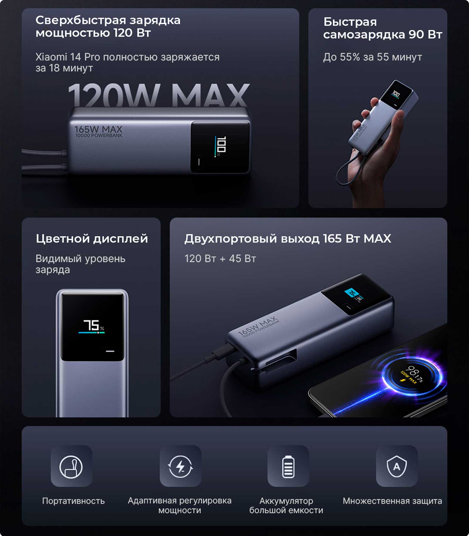 Xiaomi Power Bank 10000 165W становится настоящим спасением для тех, кто часто работает вне офиса и нуждается в стабильной подзарядке.