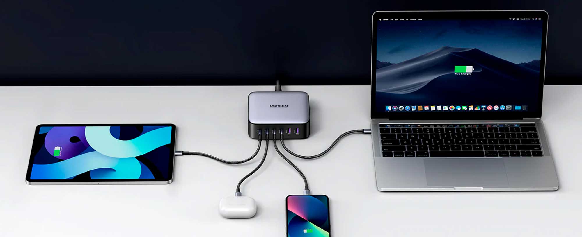 Обеспечивает исключительную производительность зарядки нескольких устройств, идеально подходит для смартфонов, ноутбуков, планшетов и других устройств