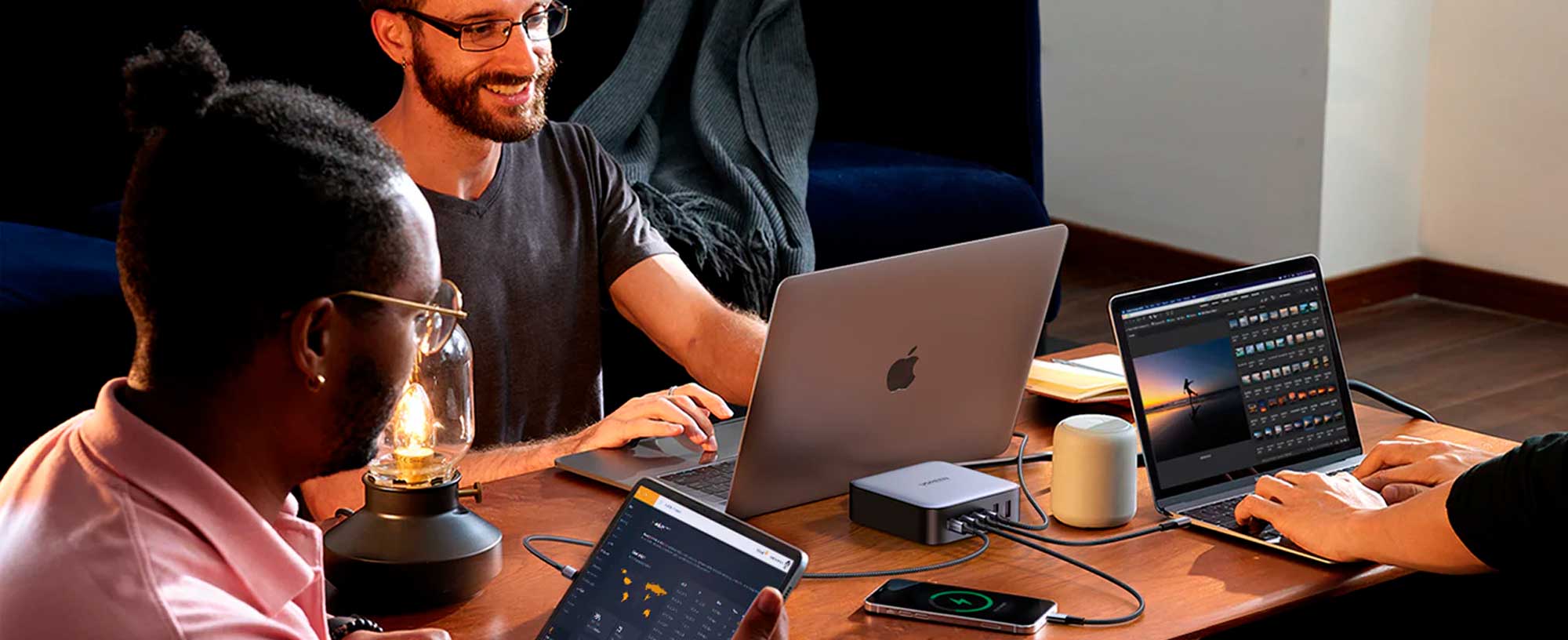 Привнесите эффективность и порядок на любой рабочий стол. Блок обеспечивает до 200 Вт мощности, одновременно заряжая 3 MacBook, 2 смартфона и AirPods.