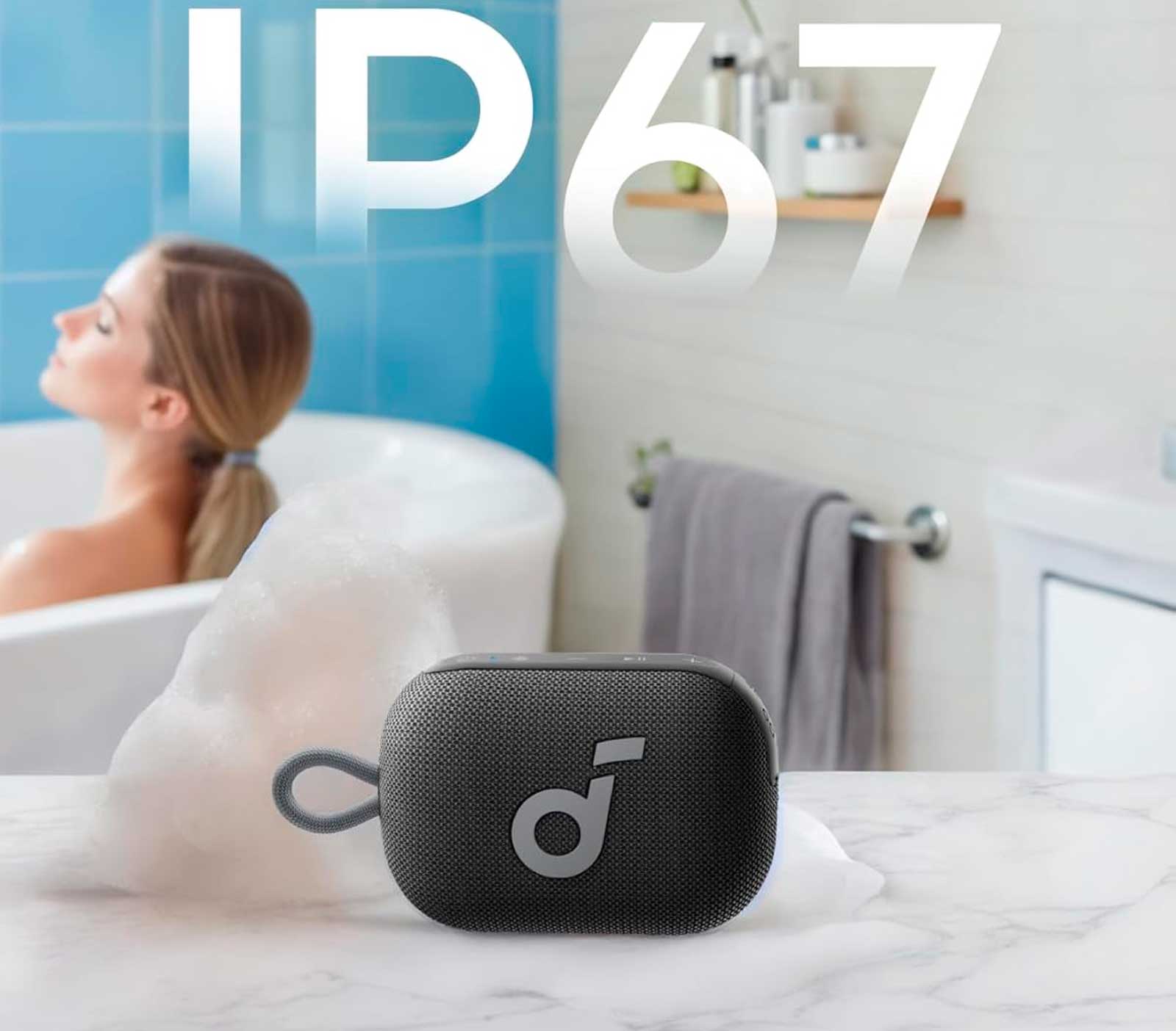 Водонепроницаемая конструкция по стандарту IP67 позволяет без всяких опасений слушать любимые треки даже в ванной.