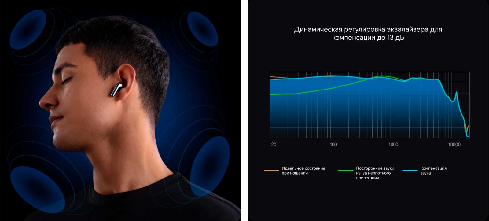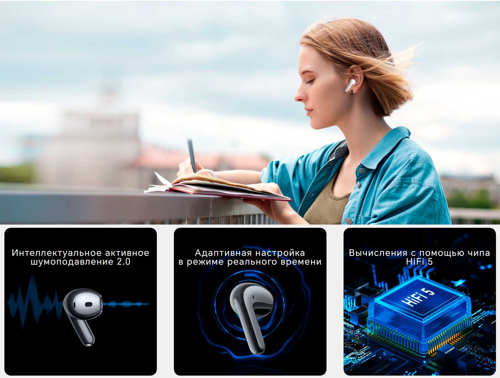 Наушники не закрывают ушной канал и не вызывают ощущения заложенности или давления в ухе при использовании, при этом эффективно снижают слышимость посторонних звуков.