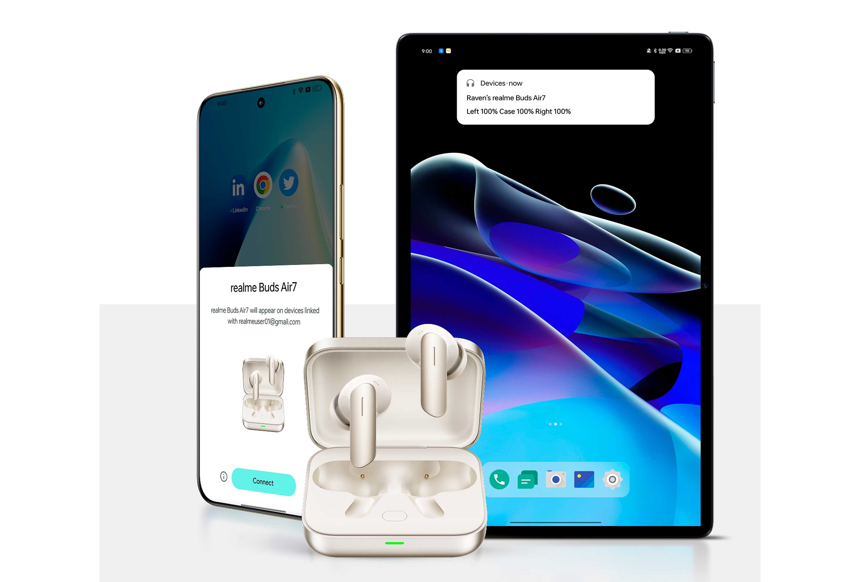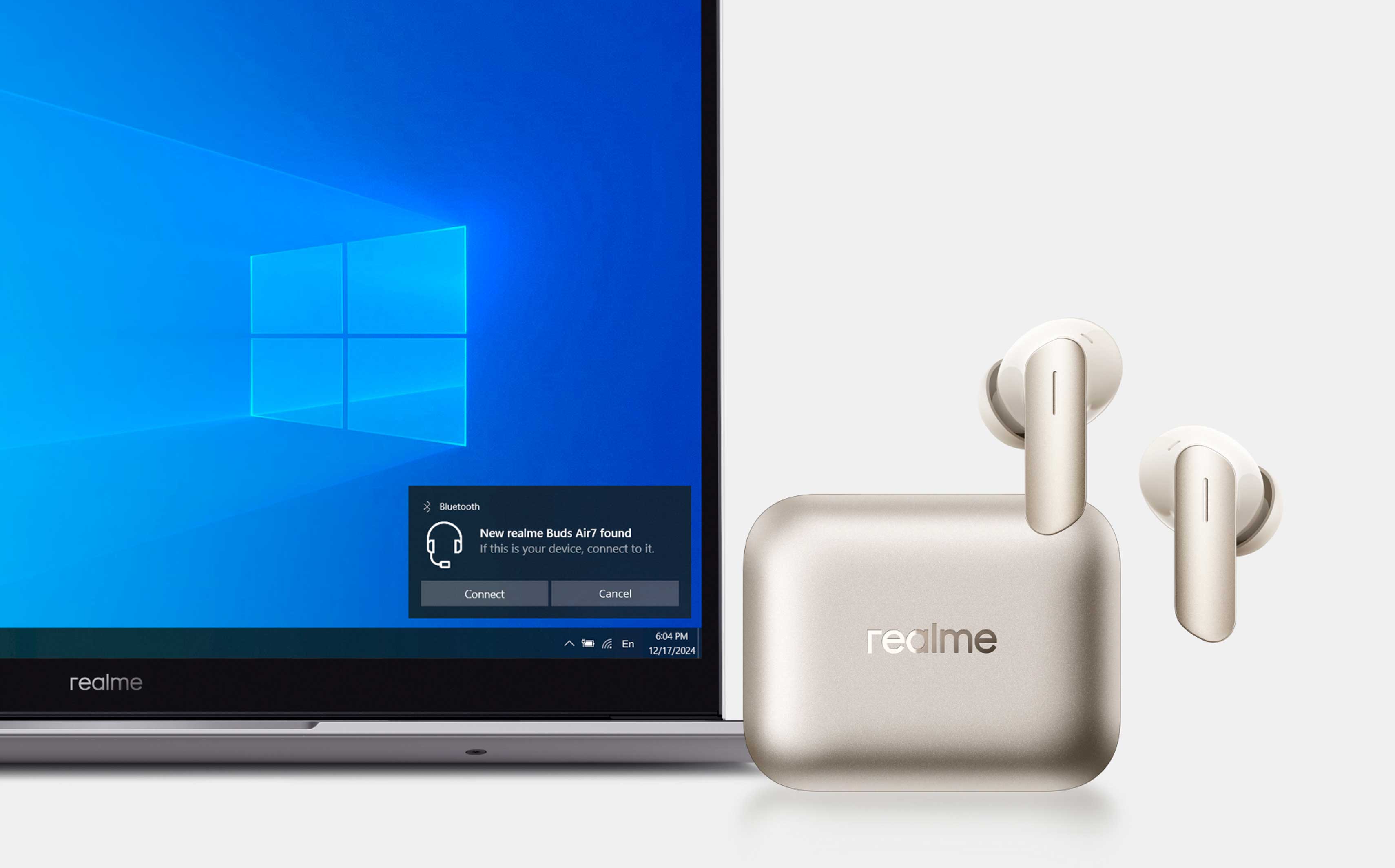 realme Buds Air7 — первые наушники realme, которые поддерживают Swift Pair, обеспечивая более быстрое и эффективное подключение к ПК с Windows.