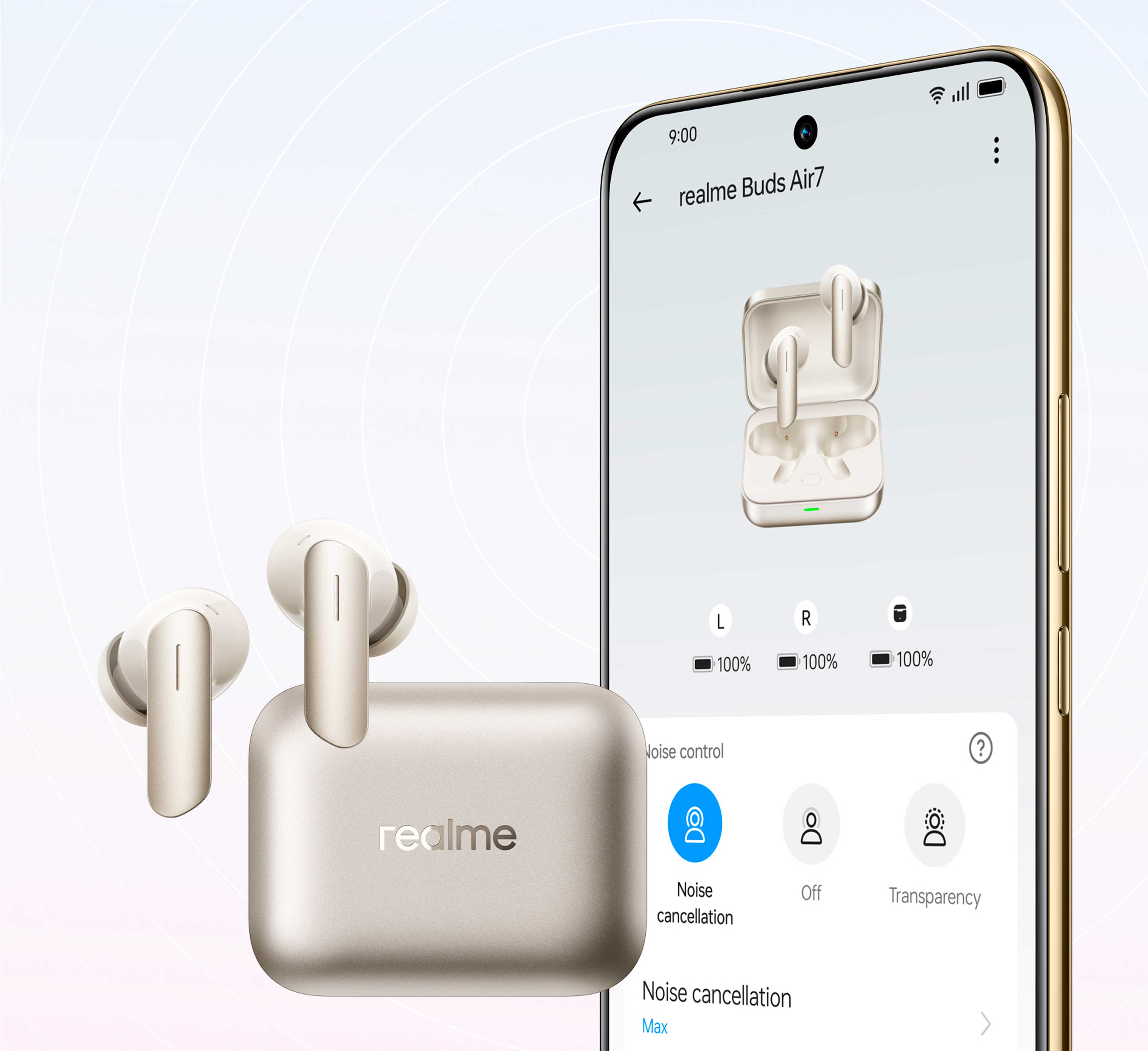 Благодаря интеллектуальному распознаванию шума realme Buds Air7 автоматически регулируют уровень шумоподавления в зависимости от окружающей обстановки. Наслаждайтесь более персонализированным и адаптивным звучанием, которое идеально