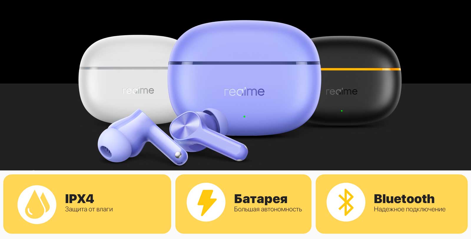 Благодаря водонепроницаемости IPX4 realme Buds T200 Lite легко справляются с потом и легкими брызгами. Независимо от того, тренируетесь ли вы или попали под небольшой дождь, наслаждайтесь музыкой без помех.