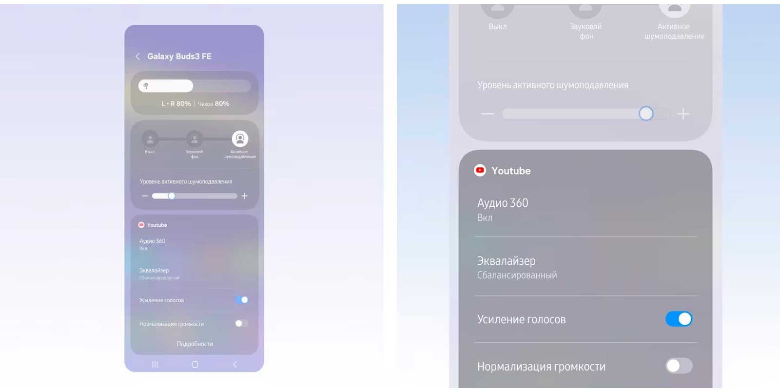 Настраивайте звук во время просмотра потокового видео или работы с другими приложениями. Доступ к ключевым функциям и настройкам Galaxy Buds можно получить прямо с панели быстрого доступа, что упрощает настройку шумоподавления и
