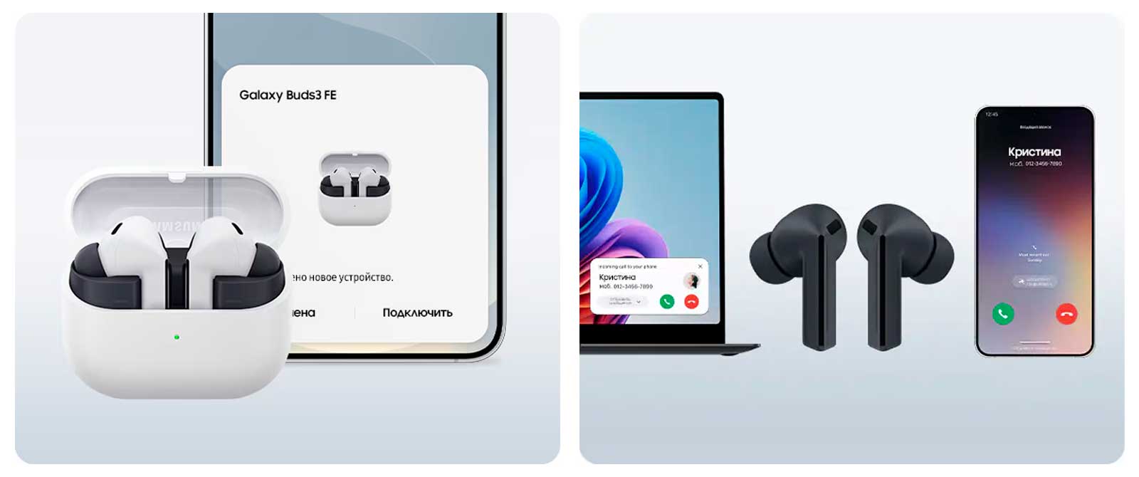 С легкостью подключайте Galaxy Buds3 FE к устройствам Samsung Galaxy. Просто откройте зарядный кейс, чтобы сопряжение началось автоматически, и нажмите кнопку «Подключить» на устройстве. Мгновенно переключайтесь между устройствами.