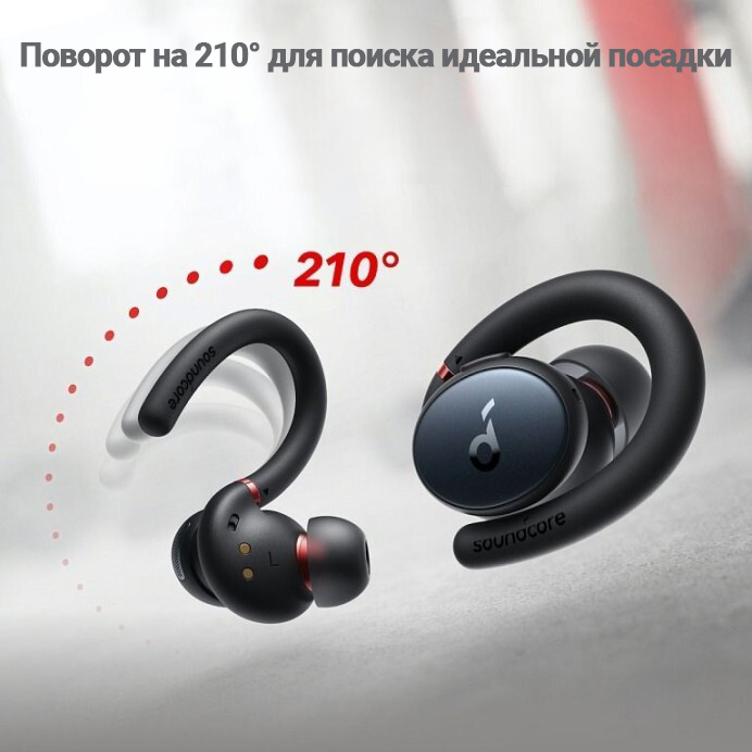 Ушные крючки, поворачивающиеся на 210°, обеспечивают надежное и комфортное прилегание для интенсивных тренировок. Они остаются на месте даже при самых динамичных движениях, предоставляя уверенность в том, что ваши наушники не соскочат в самый ответственный момент.