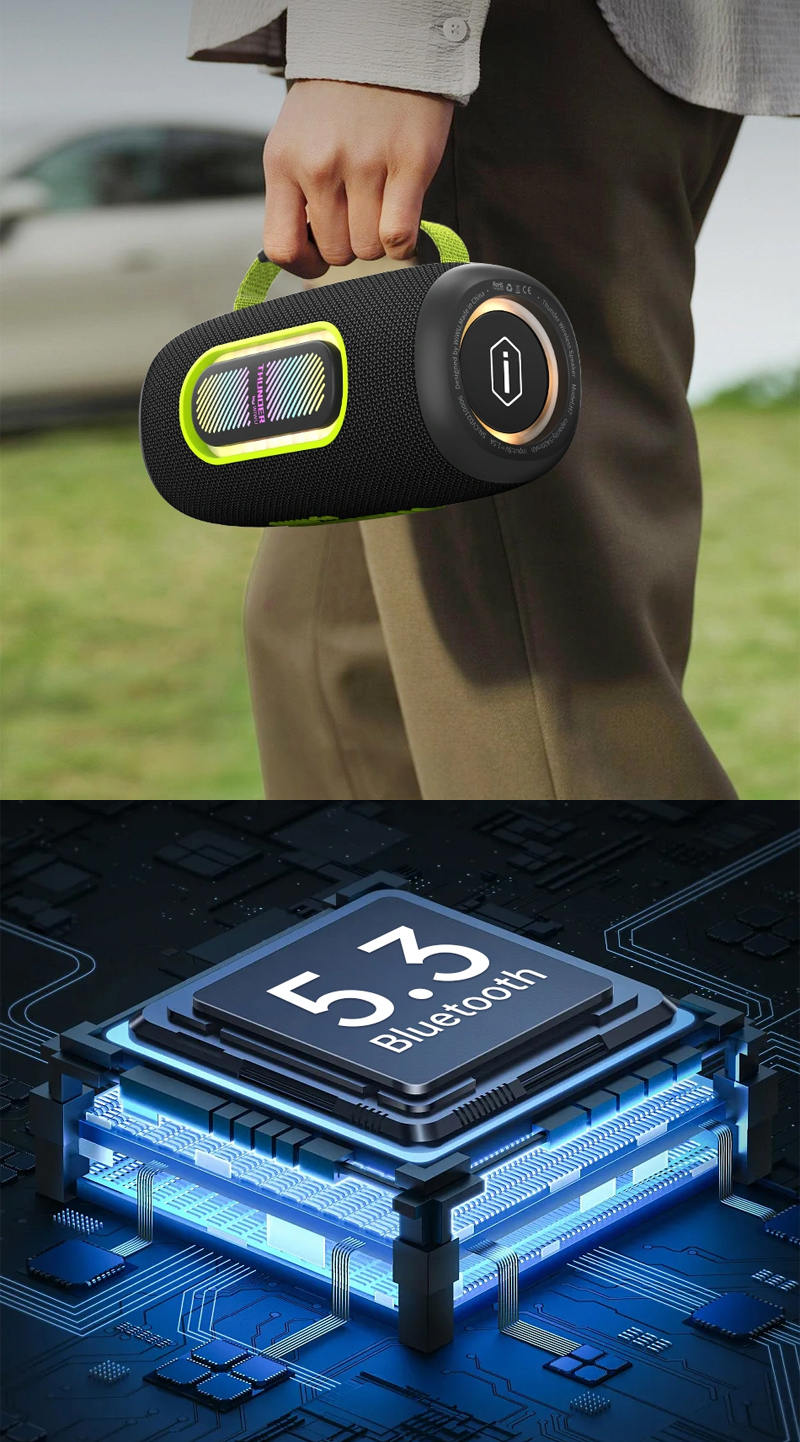 Он имеет Bluetooth 5.3 для поддержки подключения всех устройств Bluetooth, водонепроницаемый IPX6, подходит для использования на открытом воздухе.