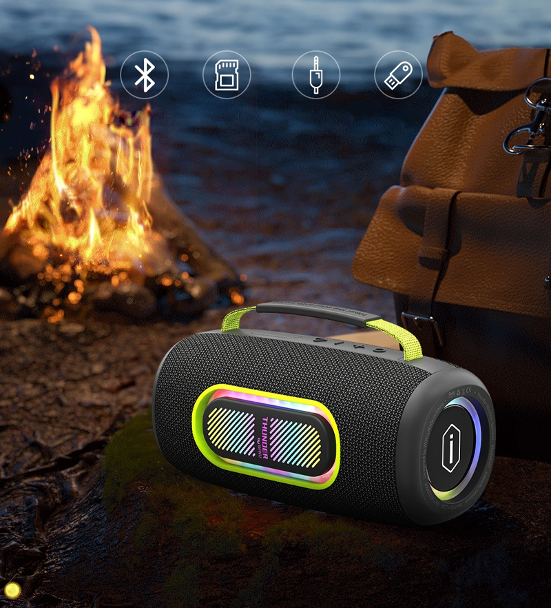 Портативная водонепроницаемая Bluetooth-колонка с ослепляющей светодиодной подсветкой и микрофоном Thunder Wireless Portable Speaker H7 с возможностью смены цвета и микрофоном, беспроводным подключением, аккумулятором AUX-IN на 5400