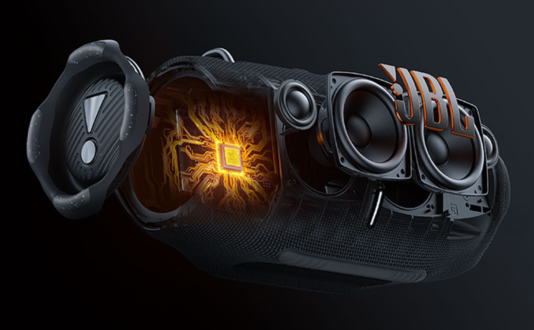 Два низкочастотных динамика, два мощных динамика и излучатели JBL Bass демонстрируют всю мощь и чистоту звучания, на которую способна колонка JBL Xtreme 4. Вы сможете не только слышать музыку, но и ощущать звучание всем телом, наслаждаясь деталями и глубиной звучания. Алгоритмы ИИ анализируют входящий сигнал и оптимизирует акустические параметры для получения более мощного звучания в широком динамическом диапазоне с меньшими искажениями.