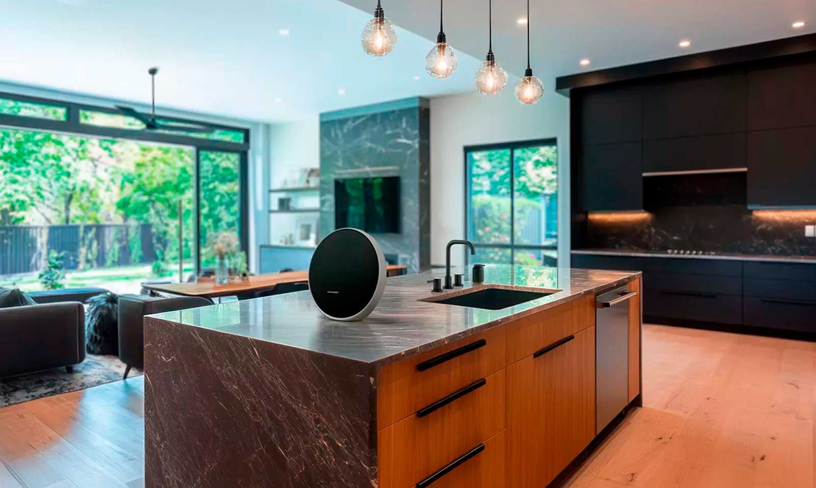 Внешний вид Harman Kardon Onyx Studio 9 является его визитной карточкой. Стильный корпус с алюминиевой рамой будет отлично смотреться в любом помещении. Более того, устройство само способно украсить любой интерьер. Алюминиевая рама