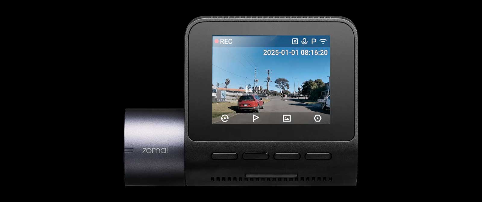 Удобство управления благодаря 2-дюймовому встроенному экрану и понятным кнопкам, собранным в компактном форм-факторе. Видеорегистратор не будет загораживать обзор при вождении.