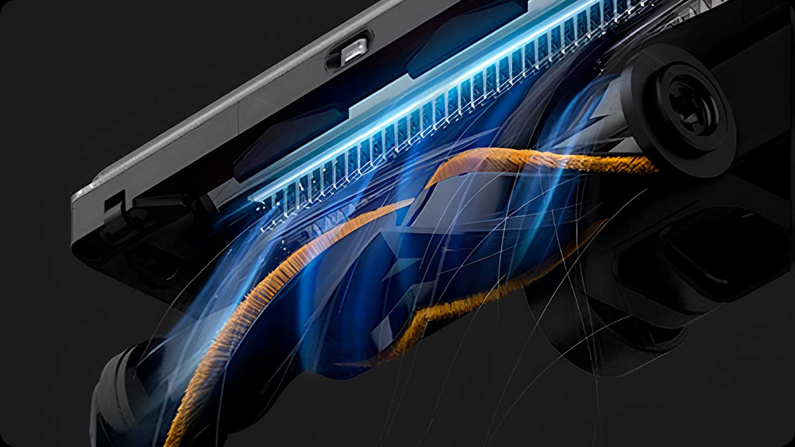 В главной щетке предусмотрена встроенная зеленая подсветка. Оно подсвечивает мусор на темных поверхностях, под мебелью или в углах, где плохое освещение. С таким решением ничего не ускользнет — вы будете видеть пыль еще до того, как