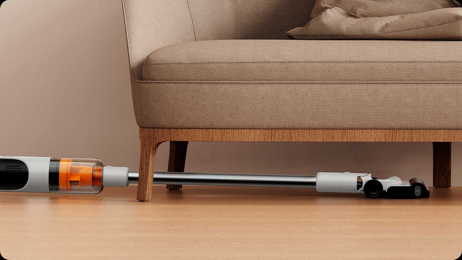 Щетка имеет высоту всего 48 мм, а корпус — 94 мм в толщину. Благодаря этому пылесос легко проникает под низкую мебель, в щели между тумбами или под кровать. Не нужно наклоняться или передвигать мебель – все продумано. Очищайте зоны,