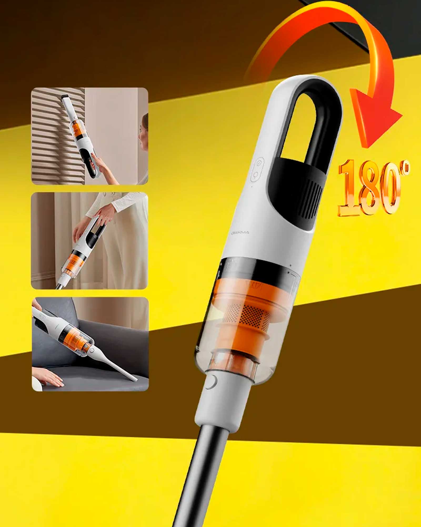 Благодаря небольшому весу и продуманной эргономике Deerma T10W удобно использовать не только на полу, но и для чистки верхних полок, карнизов или потолка. Держать пылесос комфортно, даже если уборка длится дольше. Если вам нужно