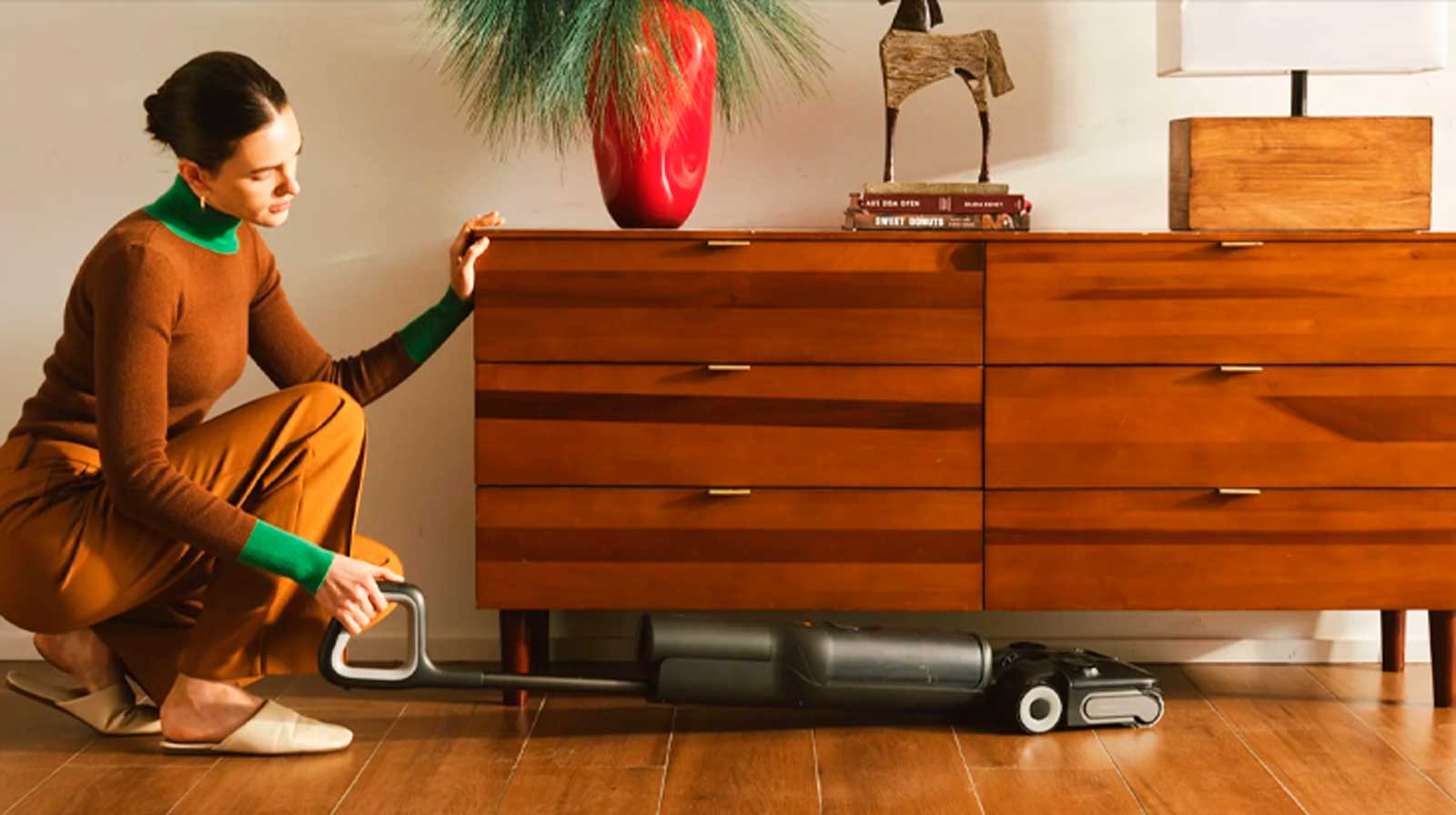 Благодаря плоской конструкции с диаметром всего 12,5 см и полному всасыванию под углом 0°, моющий пылесос Roborock F25 Combo легко проникает под низкую мебель. Он тщательно очищает даже труднодоступные участки, не оставляя ни единой