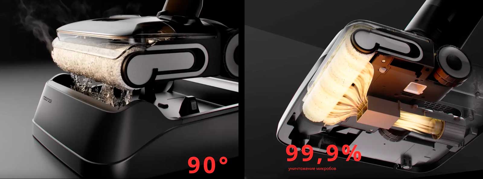 Модернизированная система чистки в Roborock F25 Combo включает скребок, который эффективно удаляет влагу без разводов. А специальные зубчатые лезвия срезают волосы до того, как они успеют намотаться на щётку, предотвращая спутывание