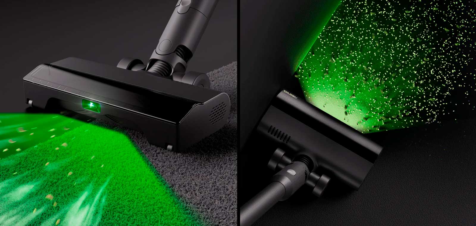 Насадка Roborock F25 Combo для сухой уборки с уникальной адаптивной щеткой глубоко очищает ковры, восстанавливая их внешний вид. Зеленый свет, излучаемый щеткой, помогает выявить пыль и мелкие частицы, которые почти незаметны при