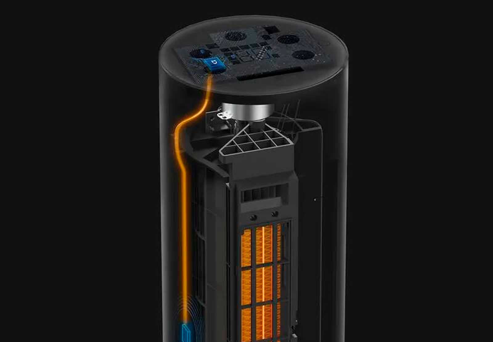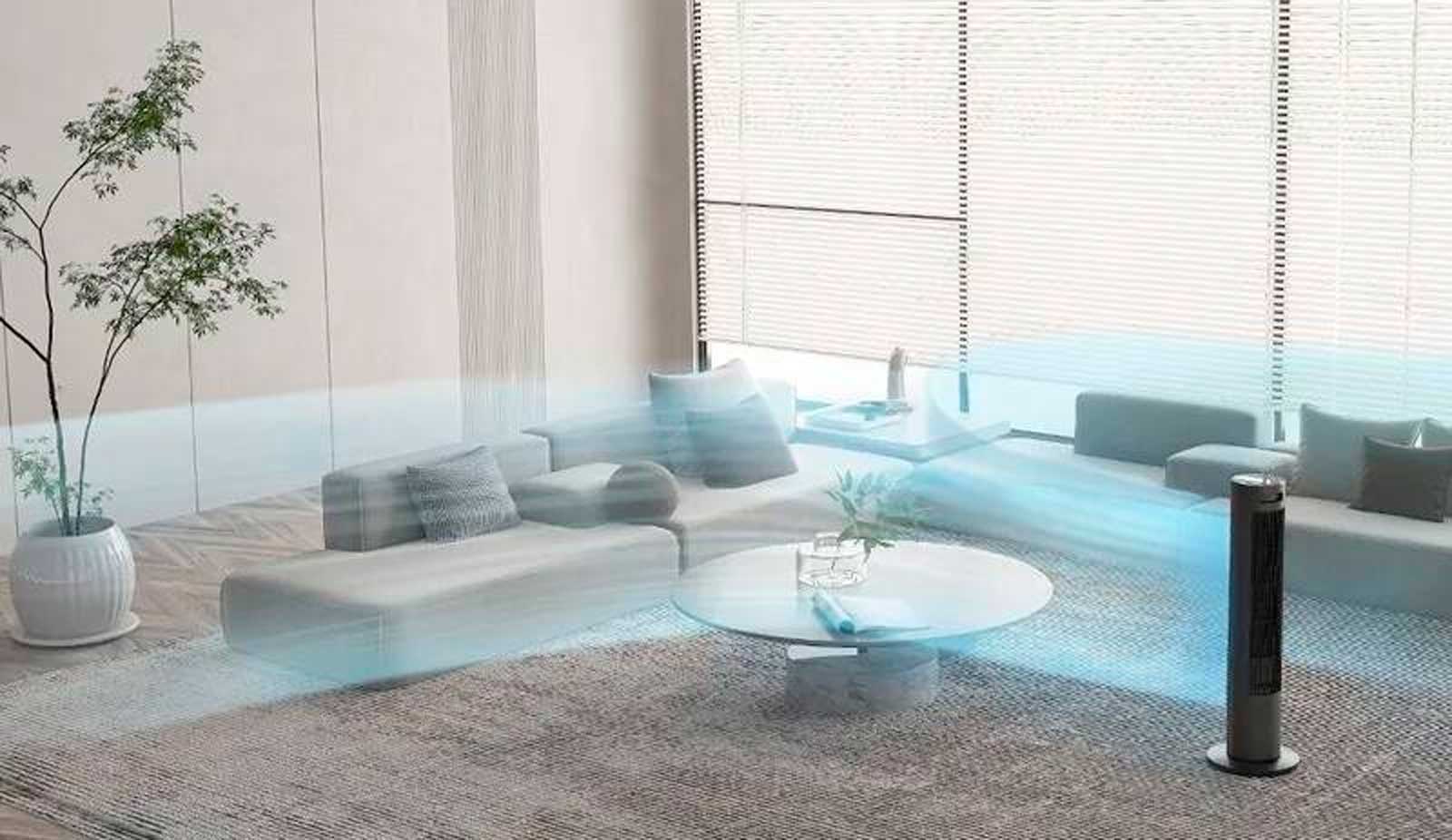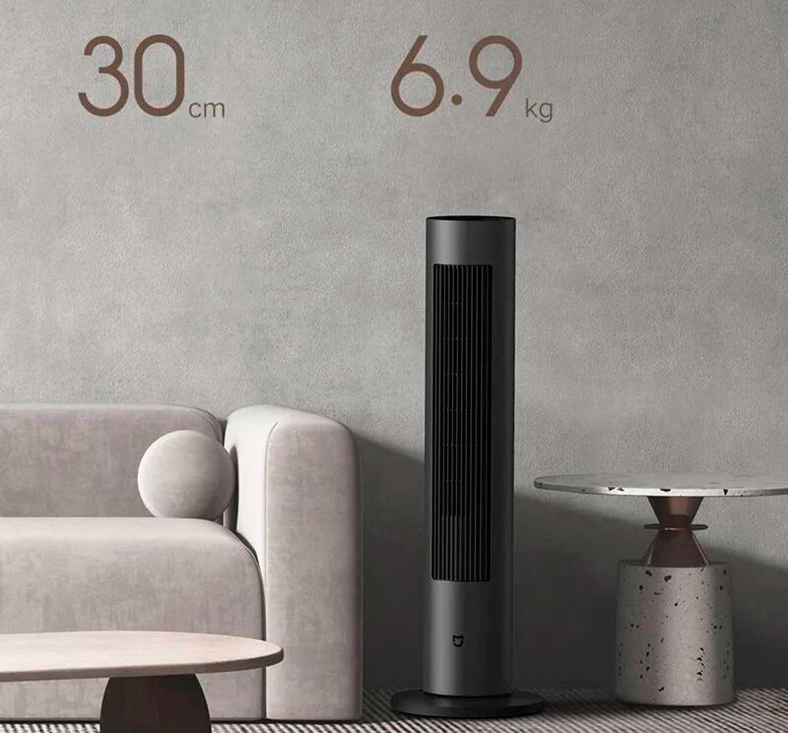 Цилиндрическая форма занимает минимум места, а вес менее 7 кг позволяет перемещать Xiaomi Fan по всему дому.