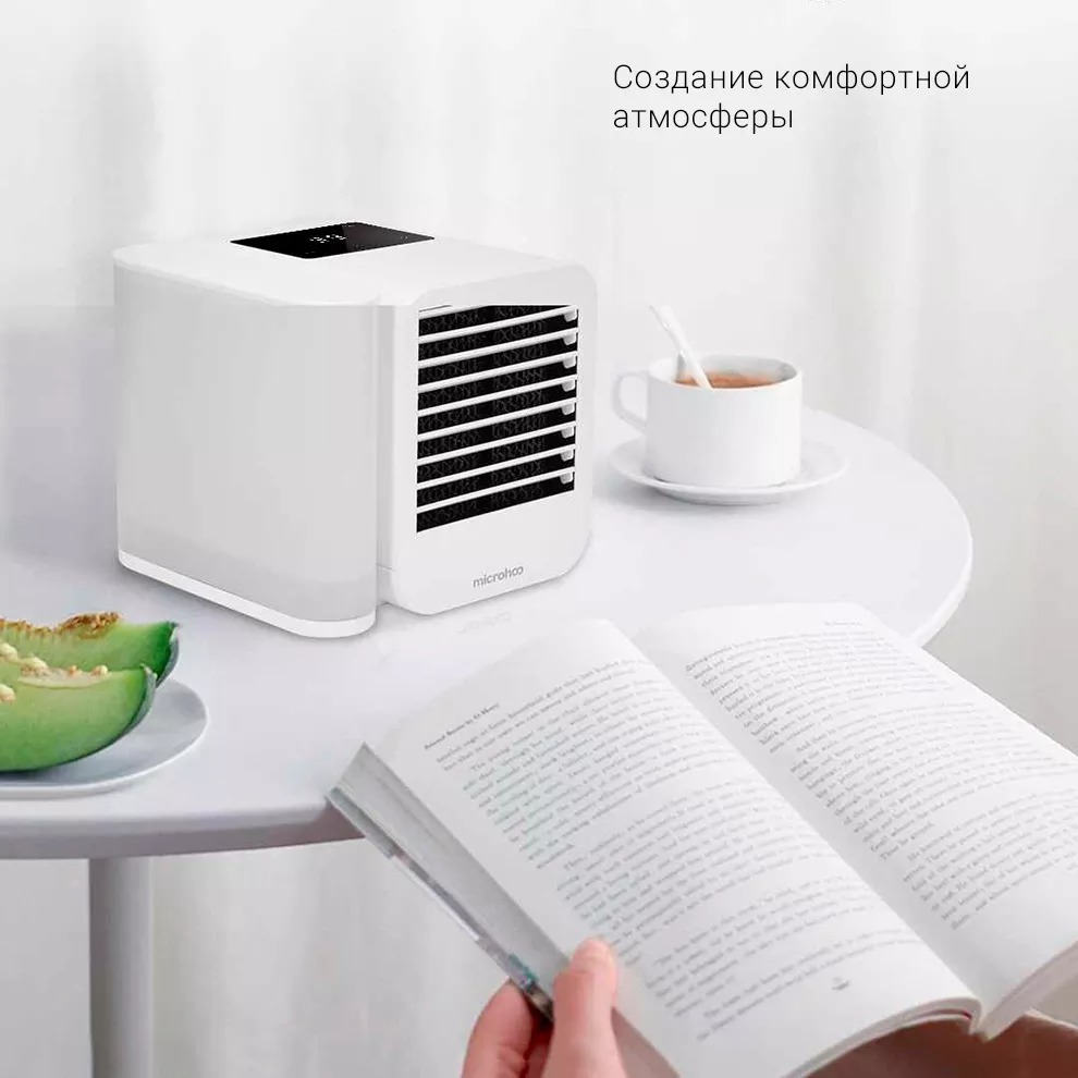 Microhoo Mini Air Conditioning Fan – это портативный кондиционер, который можно расположить прямо на своем рабочем столе. Он оснащен сенсорным дисплеем, с помощью которого можно настроить