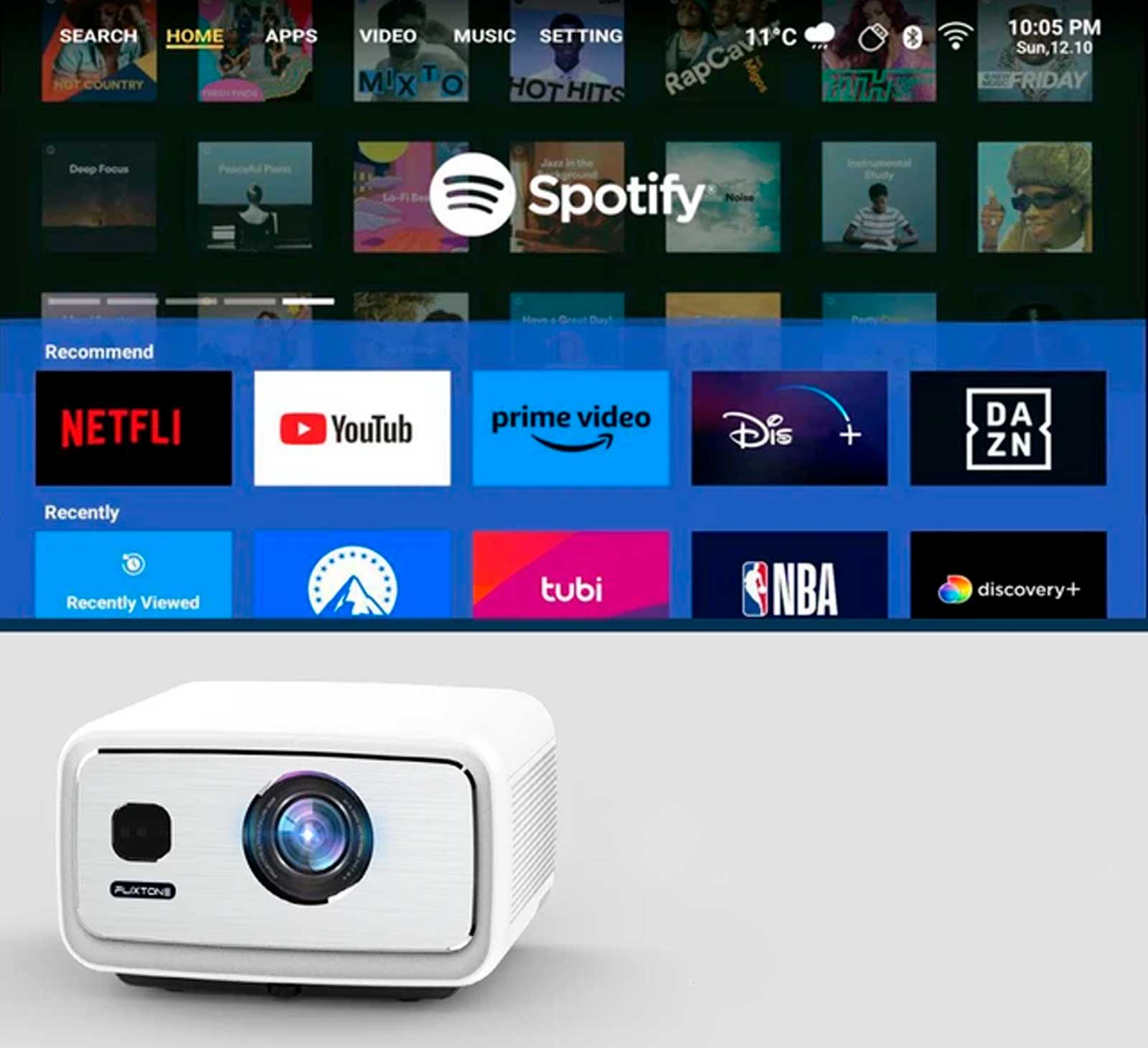 Проектор работает на Android 12.0 и поддерживает воспроизведение большинства популярных видеоформатов. Вы можете смотреть YouTube, Netflix или запускать приложения напрямую с устройства. Управление интуитивно понятное, как на