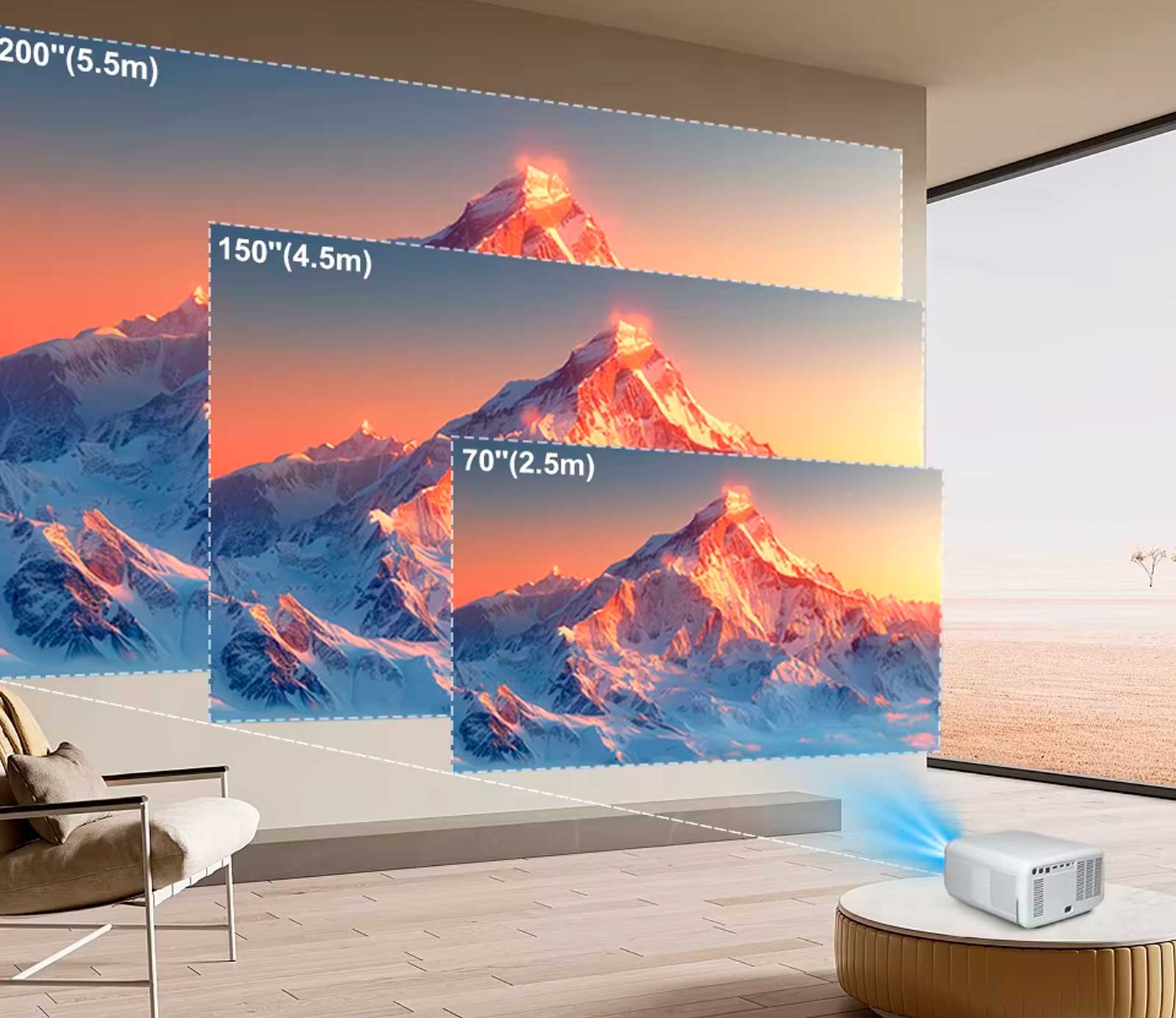 Устройство поддерживает проекцию изображения размером до 300 дюймов. Это идеальный вариант для создания настоящего домашнего кинотеатра или масштабных презентаций. Чем больше экран — тем сильнее эффект погружения.