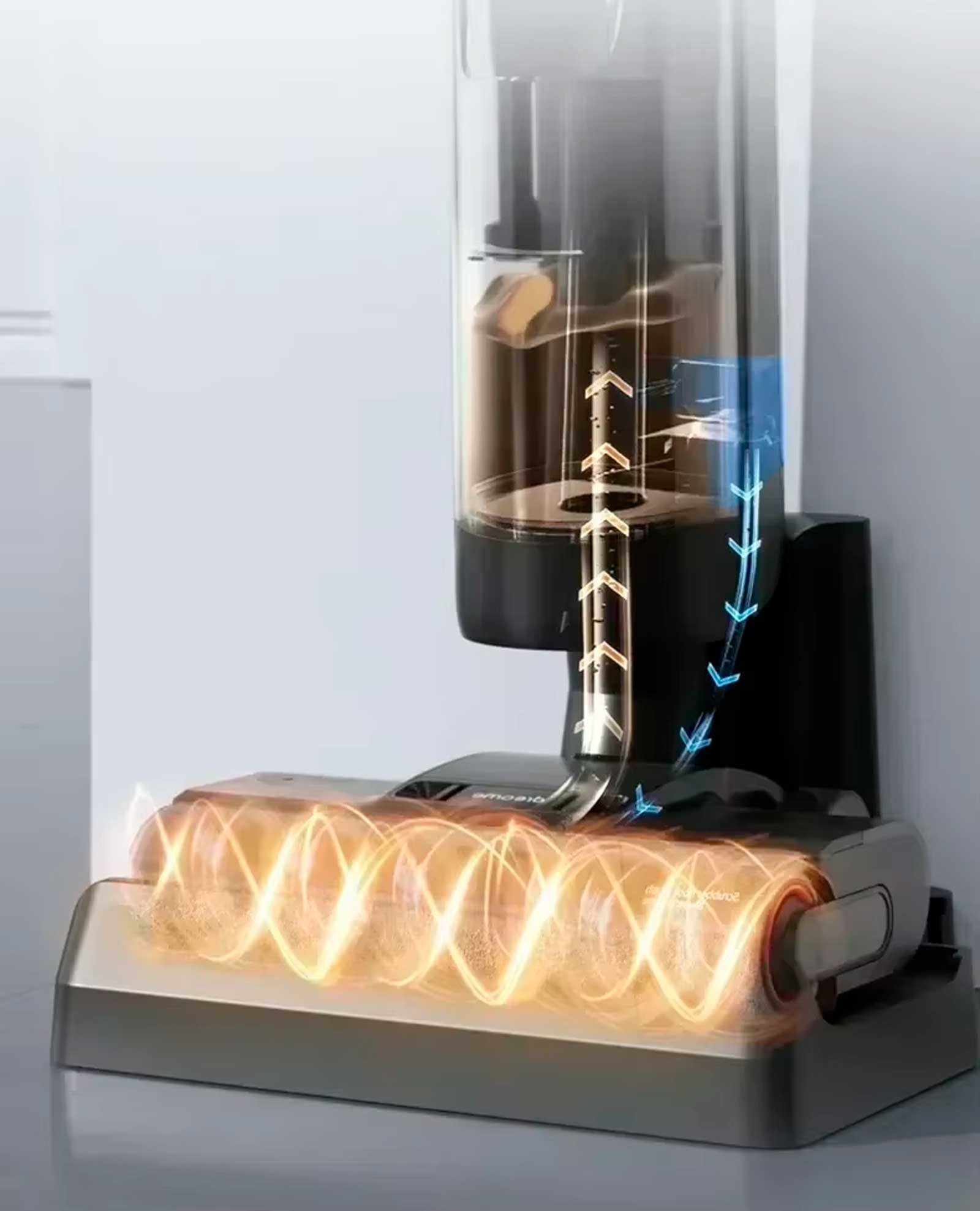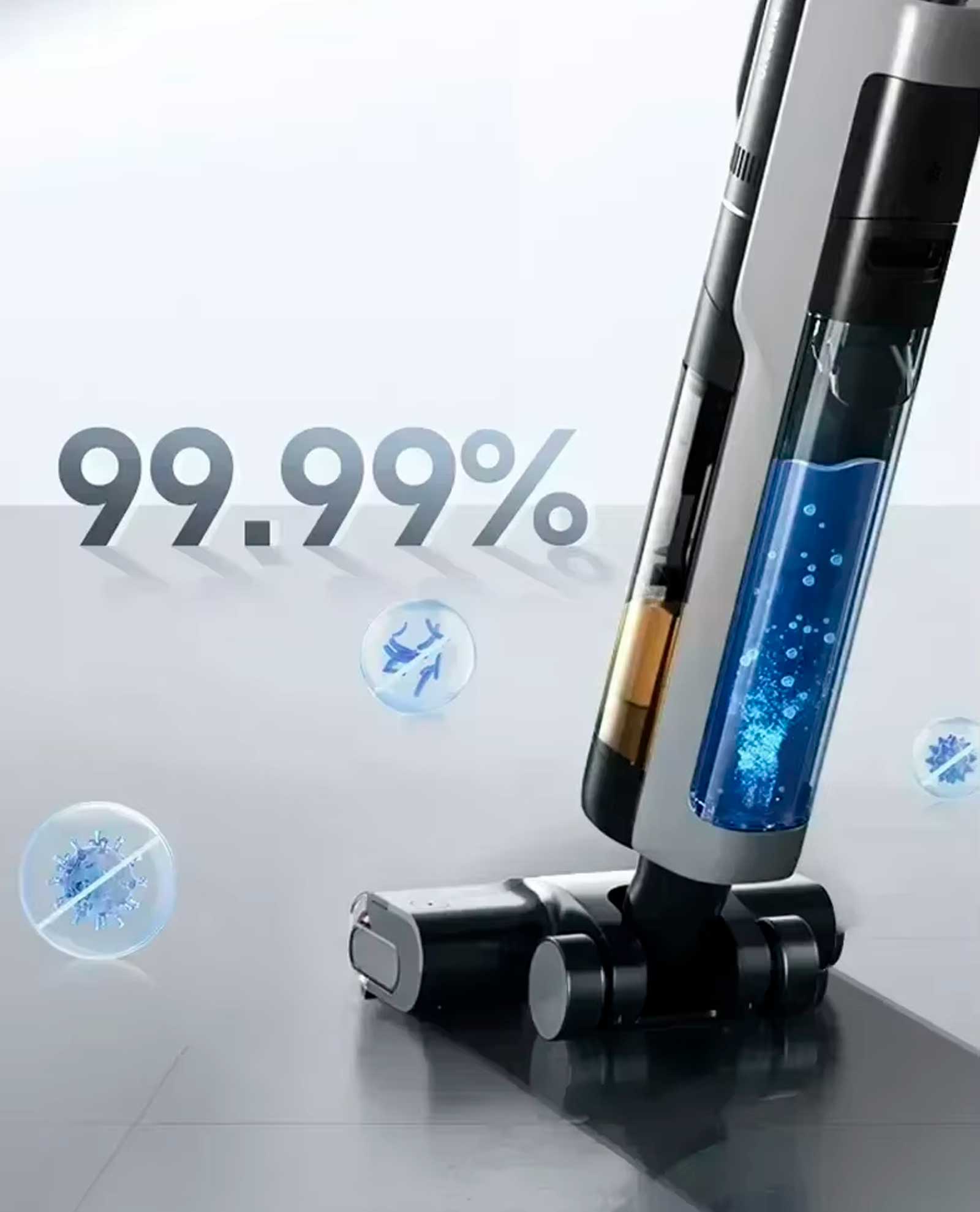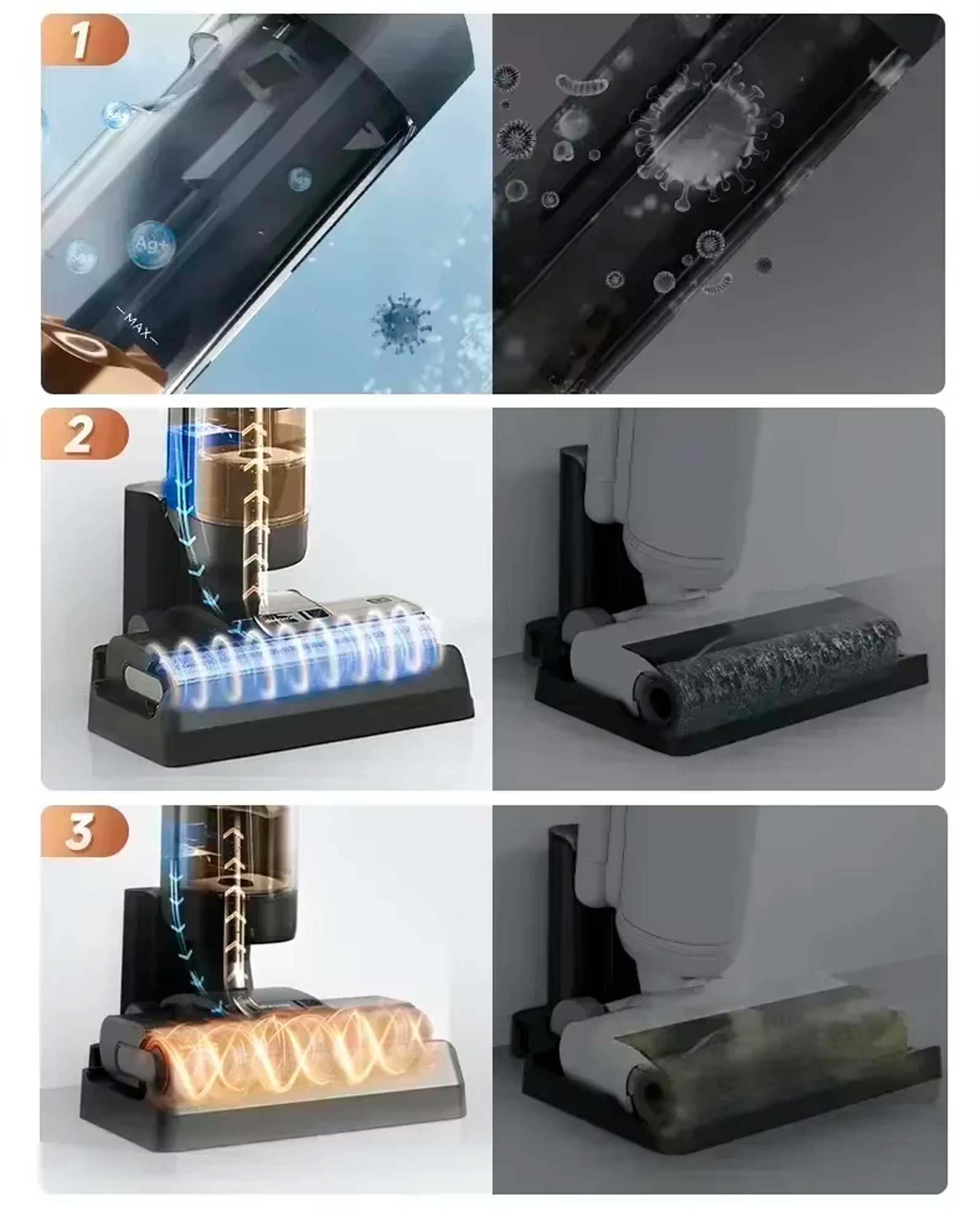 Теперь данная функция имеет попеременную двухходовую конструкцию самоочистки, валики для влажной уборки сначала будут вращаться вперед, а затем в противоположном направлении, тем самым создавая эффект стиральной машины. Оснащен функцией стерилизации воды электролизом + ионами серебра + сушкой горячим воздухом, полной тройной стерилизацией.