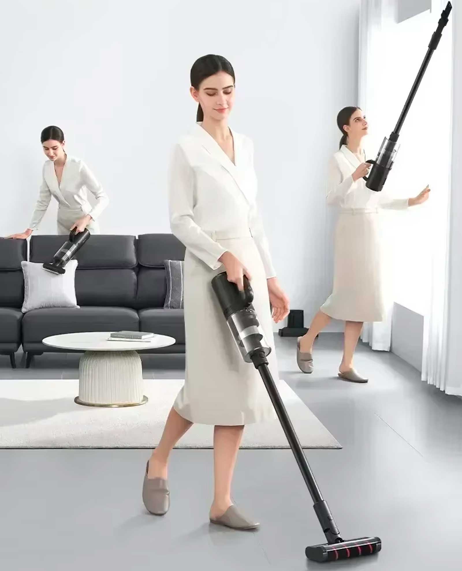 Благодаря конструкции «два в одном» (пылесос + скребок для пола), изделие также оснащено 4 различными насадками, в том числе мягкой бархатной щеткой для пола, электрической щеткой для удаления клещей, всасывающей щеткой с плоской конструкцией и мягкой щеткой.