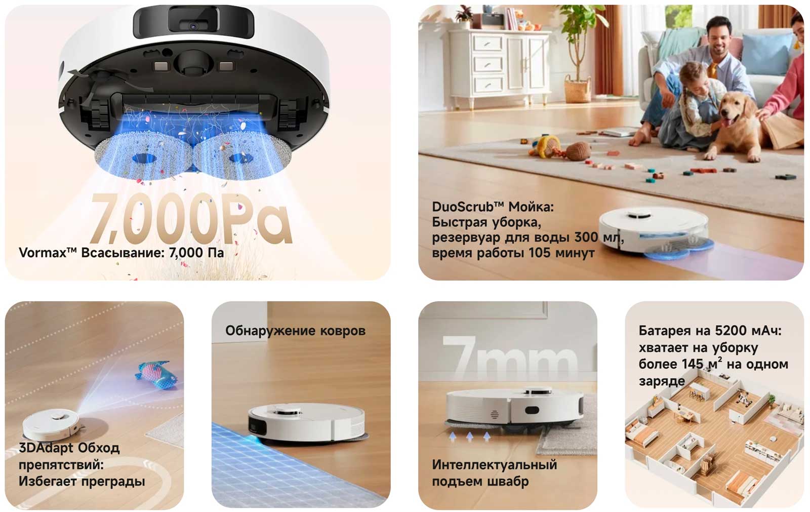 Откройте для себя мощность всасывания Vormax™, которая обеспечивает силу всасывания 7000 Па. Попрощайтесь с въевшимися пятнами и пылью и сделайте шаг навстречу простой и эффективной уборке для безупречной чистоты в вашем доме.