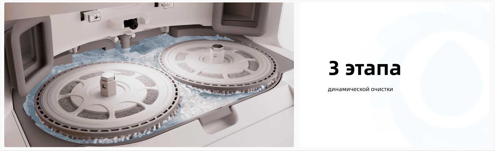 сушку при вращении на высокой скорости. Более того, док-станция динамически регулирует скорость и подачу воды, чтобы обеспечить максимальную эффективность и удобство.