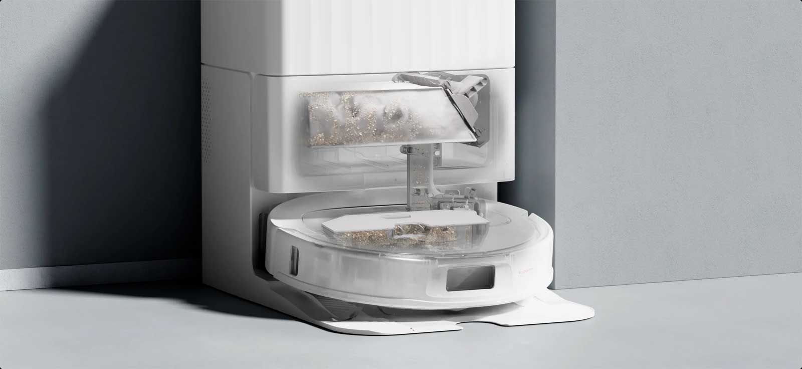 Пылесборник док-станции автоматически опустошает контейнер робота, что позволяет вам обходиться без ручной очистки до 7-9 недель, обеспечивая долгосрочное удобство.