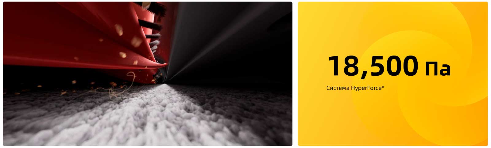 Испытайте невероятную силу уборки пылесоса с системой HyperForce® и мощностью всасывания 18 500 Па. Это устройство эффективно удалит глубоко въевшуюся грязь и пыль как с ковров, так и с твердого напольного покрытия, гарантируя