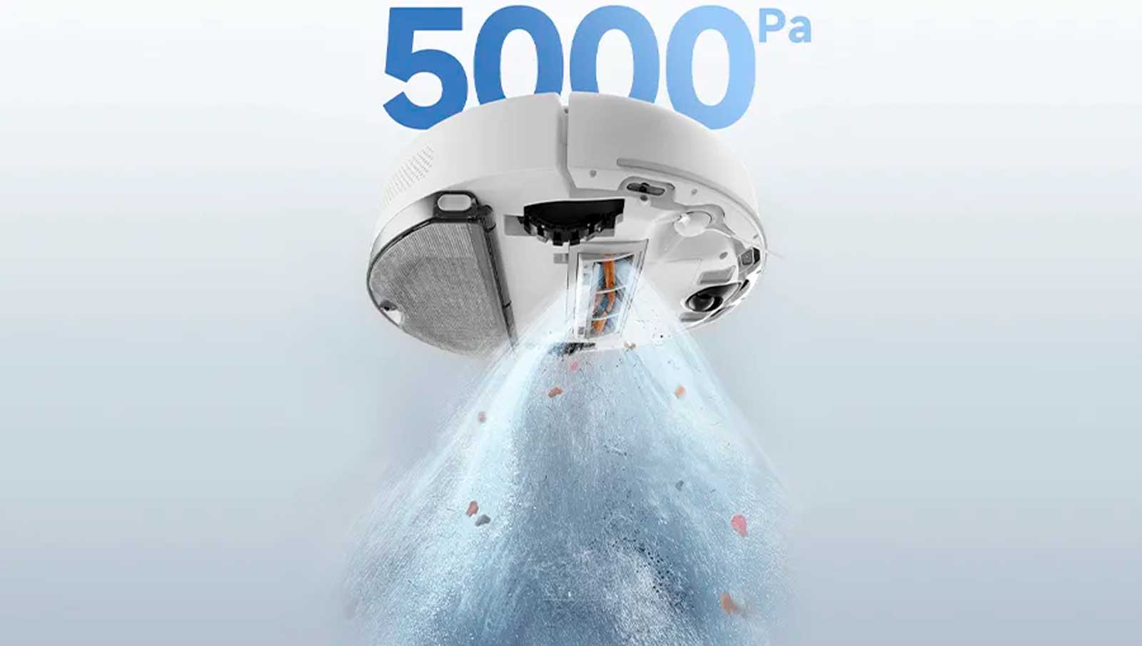 Современный производительный двигатель поддерживает высокую мощностью всасывания до 5000 Па. Это позволяет роботу качественно удалять с пола весь мусор, пыль, шерсть животных, крошки и даже рассыпавшуюся крупу. Пылесос имеет в