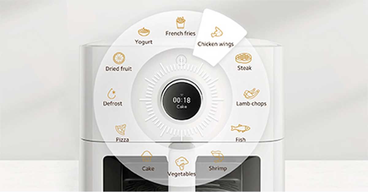 Интеллектуальный интерактивный дисплей позволяет легко настраивать режим и температуру приготовления, а также устанавливать время приготовления, вращая и нажимая кнопки. Заранее задавайте и настраивайте различные рецепты для