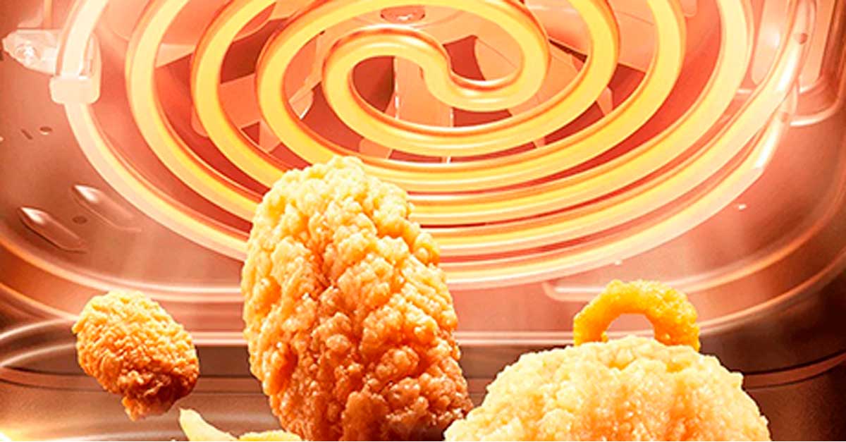 После приготовления блюда оно автоматически подогреваются в течение 30 минут, благодаря чему сохраняется хрустящая корочка и свежесть.
