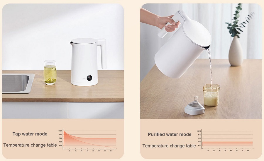 Электронный дисплей встроен в корпус чайника Mijia Thermostatic Electric Kettle 2 и не нарушает минималистичный дизайн, точно отображая температуру воды в режиме реального времени.