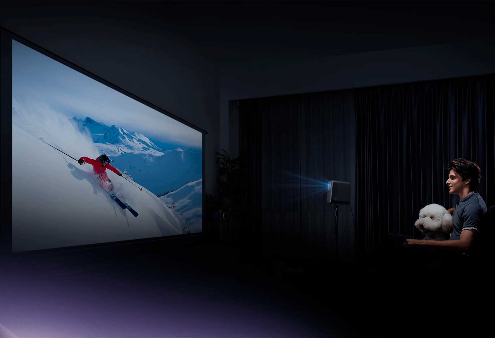 Благодаря проекционному отношению 1.21:1 вы можете проецировать изображение на большой экран размером от 40 до 120 дюймов, где бы вы ни находились.