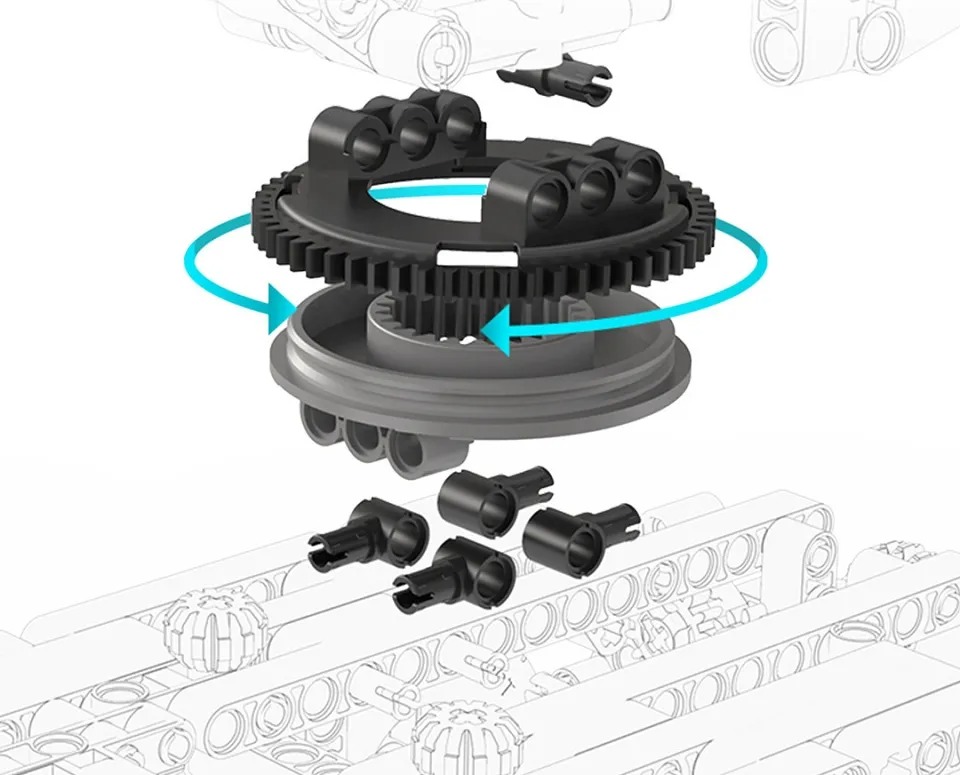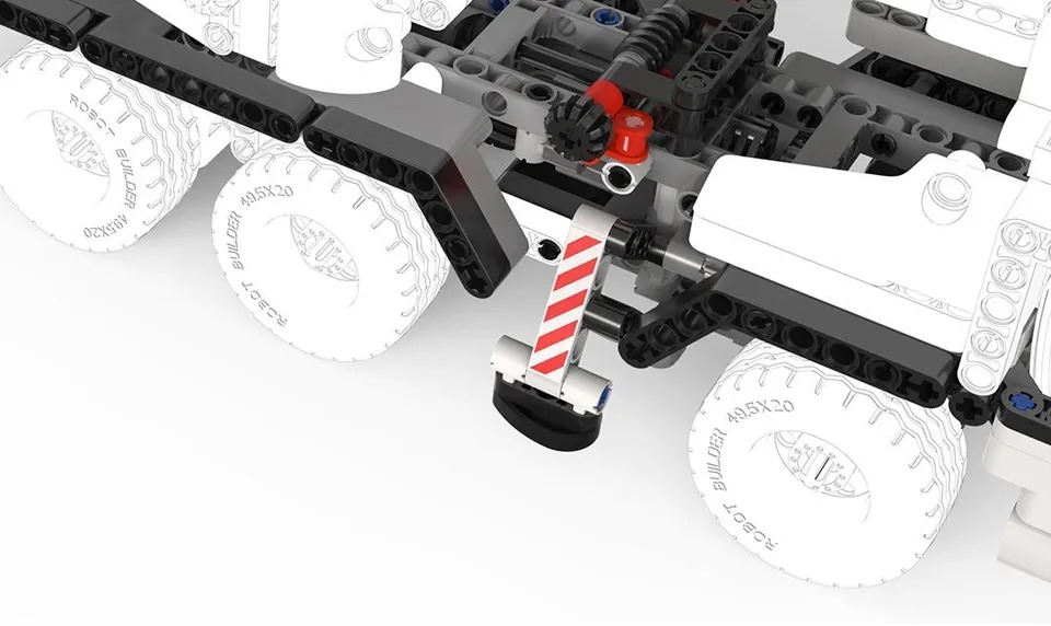 Каждая деталь сделана с высокой точностью (приблизительное расстояние между деталями – 0.005 мм). Такая точность обеспечивает четкую и слаженную работу всех механизмов автокрана и продлит срок эксплуатации игрушечного автокрана.
