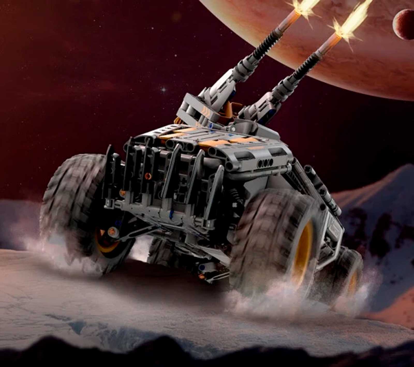 собрать впечатляющую модель с футуристичным дизайном, вдохновлённым военной и космической техникой.