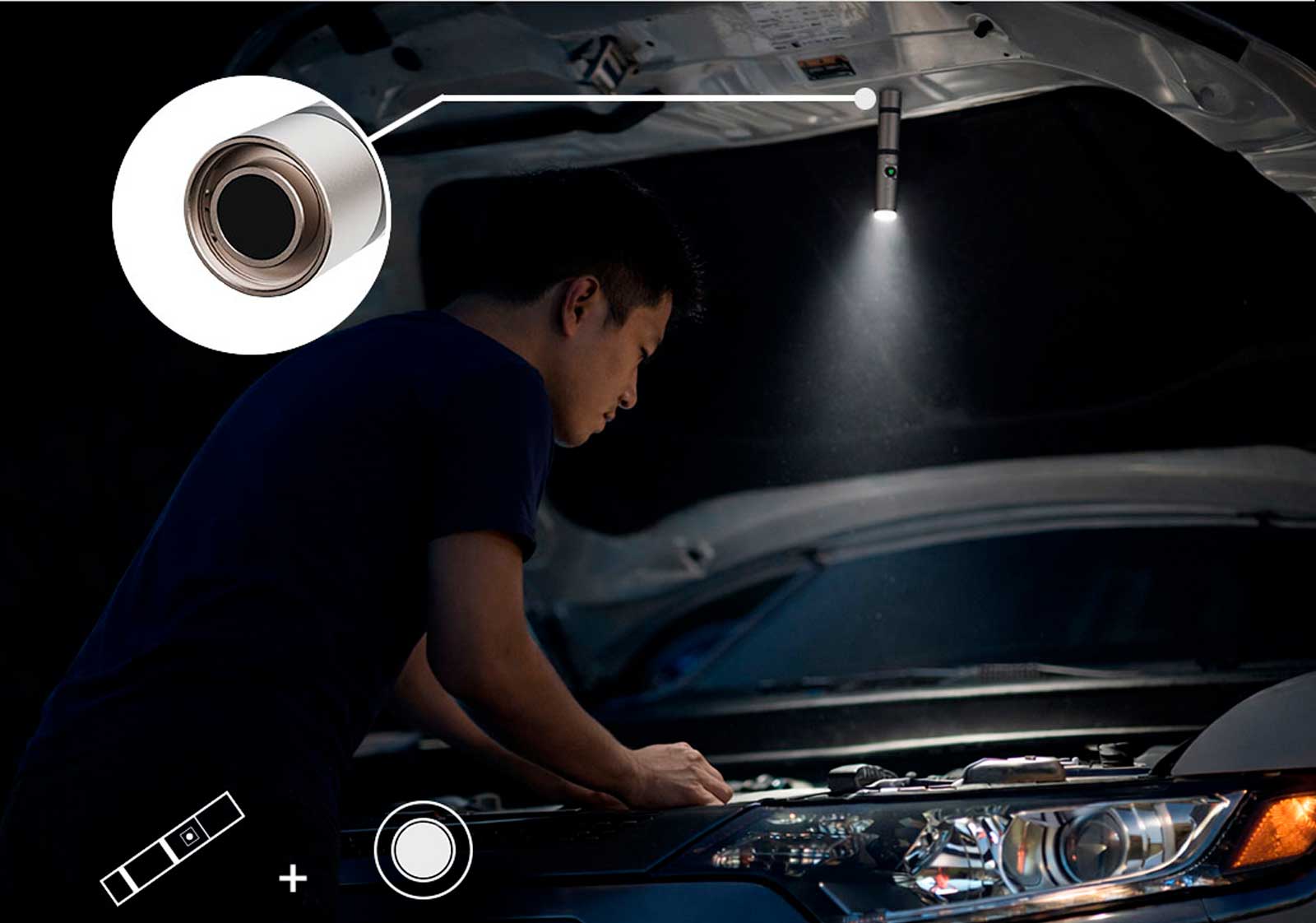 Сверхсильный магнит — можно закрепить на капоте автомобиля или любой металлической поверхности. Освобождает руки, мгновенно превращая фонарь в ремонтный или рабочий светильник.