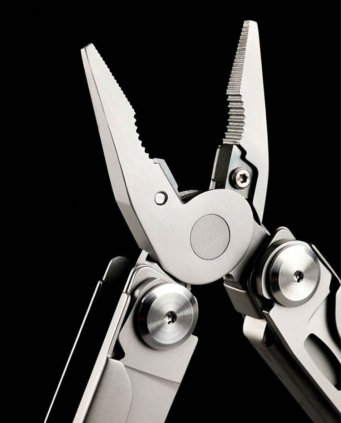 Мультитул может выполнять функции сразу нескольких инструментов: пилы, кусачек, стропореза, острогубцев, плоскогубцев, двух отверток (плоской и крестовой), ножниц, ножа, открывашки бутылок, велосипедного ключа, линейки и стеклобоя.