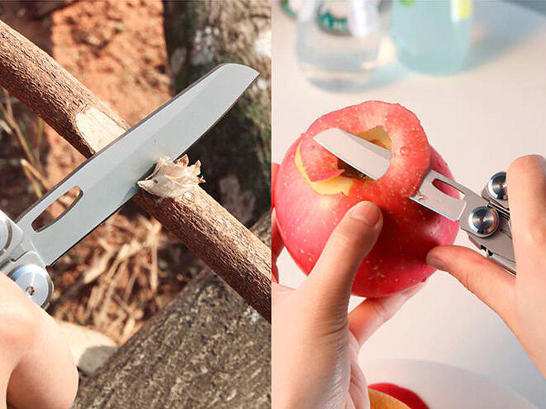 Острый нож подходит для срезания мелких сучков и веток. В то же время с его помощью можно почистить яблоко. Имеется пила, которая отпилит более толстые ветки. С помощью специальной открывашки можно без труда открыть бутылку с