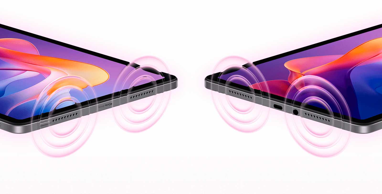 Redmi Pad 2 поддерживает технологию Dolby Atmos®, которая создает эффект объемного звука в фильмах, играх и при прослушивании музыки.