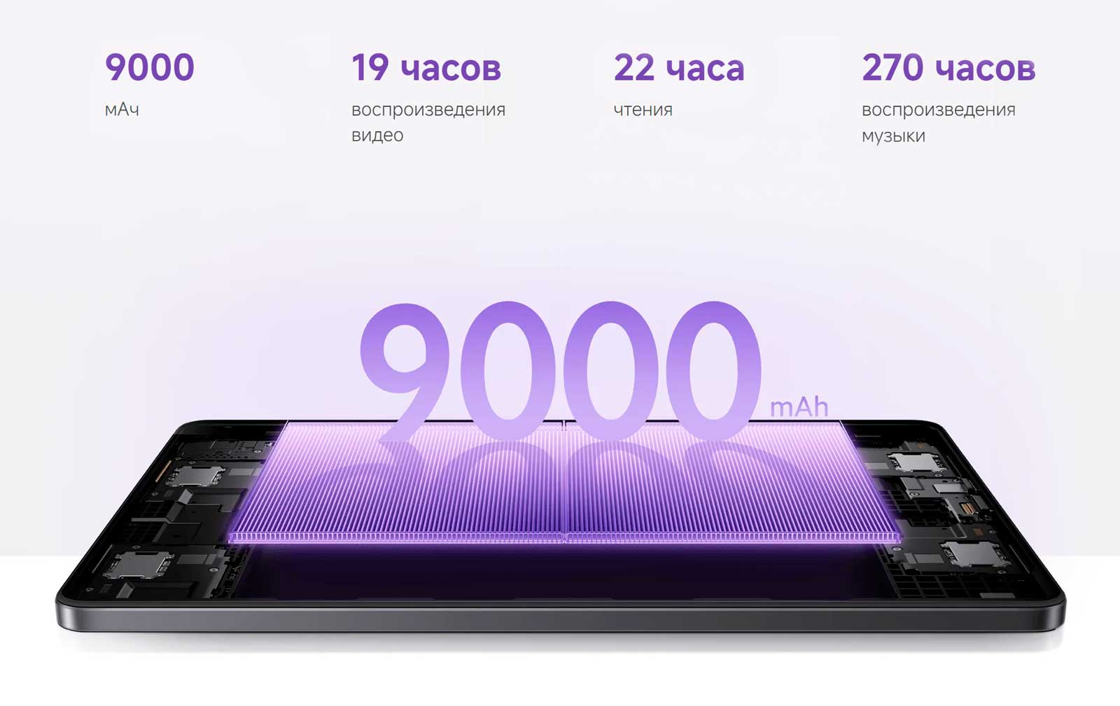 Redmi Pad 2 оснащен ёмким аккумулятором 9000 мАч (тип.), который обеспечивает длительное время автономной работы. Он с легкостью справляется с такими занятиями, как беспрерывное чтение, игры и просмотр фильмов.