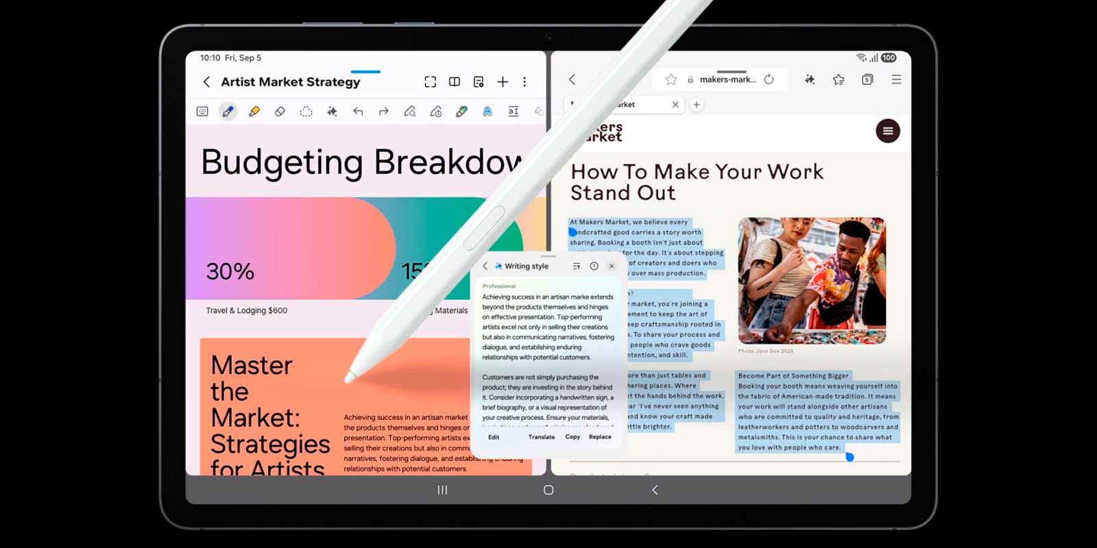 Galaxy Tab S11 идеальным спутником для творчества, когда вам это нужно. А его легкий, тонкий дизайн делает его легко портативным, когда вы находитесь в движении.