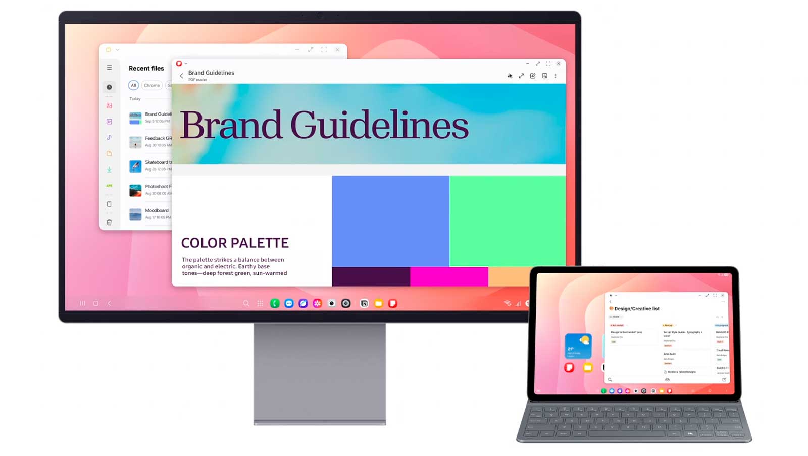 Samsung DeX позволяет расширить дисплей вашего Galaxy Tab S11 для создания бесшовной многозадачной среды с 4 рабочими местами. Свободно и легко перемещайте приложения между экранами, чтобы ваш рабочий процесс был плавным и