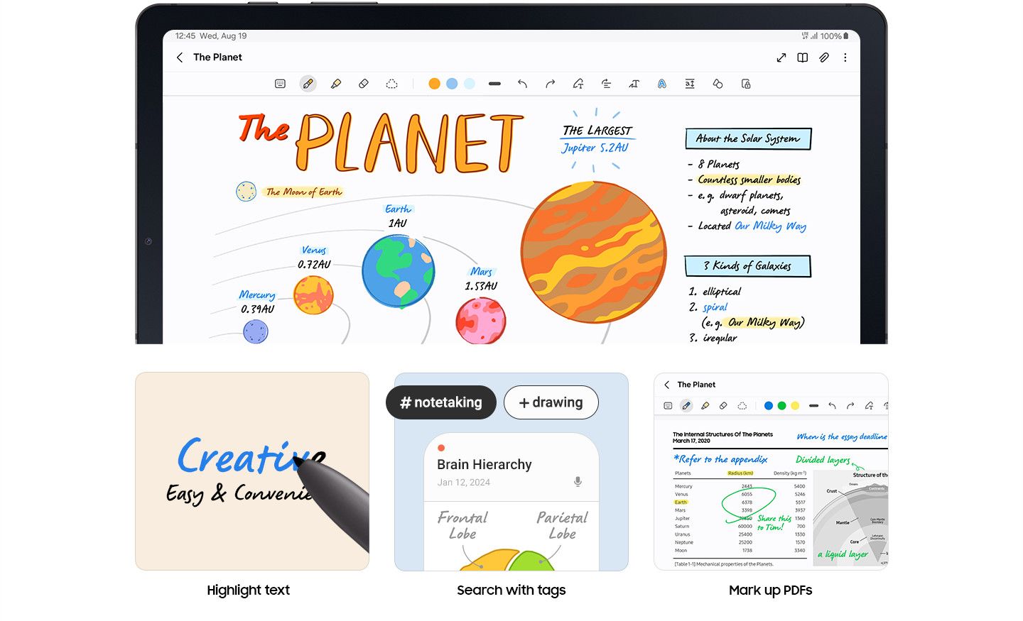 С пером S Pen конспектирование лекций стало проще. Вы можете сначала писать заметки, а затем менять цвета. Быстро сортируйте и сохраняйте заметки с помощью тегов с возможностью поиска. Вы даже можете писать непосредственно в PDF-файлах, чтобы упростить учебный процесс. Когда наконец наступит решающий момент, вы будете к этому готовы.