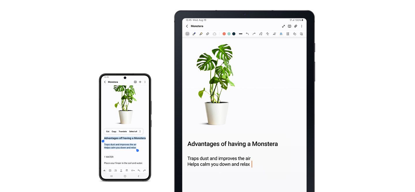 Работайте на нескольких устройствах одновременно. Вы можете скопировать текст или изображение с телефона и вставить его на планшете, и наоборот. Или написать заметку в Samsung Notes или работать с Samsung Internet с планшета, а затем открыть эти приложения на телефоне, чтобы продолжить работу с того места, на котором вы остановились.